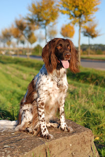 Wegen der Schafherde, die seit dem letzten Wochenende zwischen Marienhöhe und Hainstadter Sportheim lagert, muss Ronja in diesem Gebiet an der Leine gehen (oder wie der Amerikaner sagt - my dog goes online). Das ihr dies überaus lästig ist, kann man ihr ansehen.